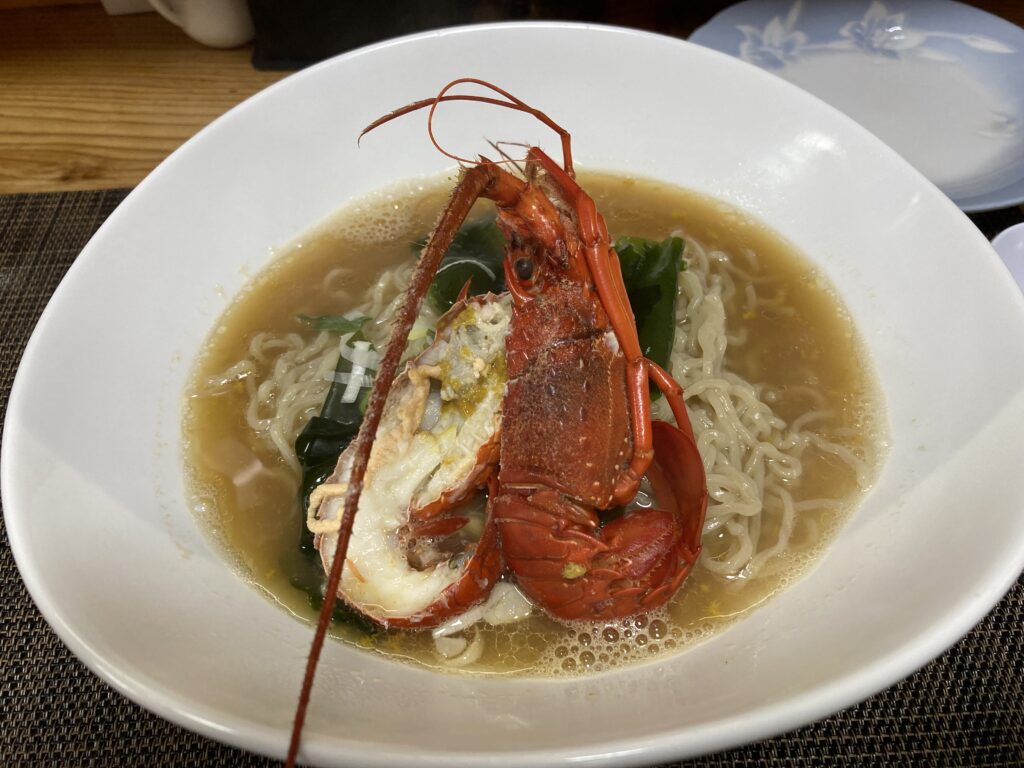 写真は伊勢海老ラーメンで、食事をした2,022年当時で1,800円。