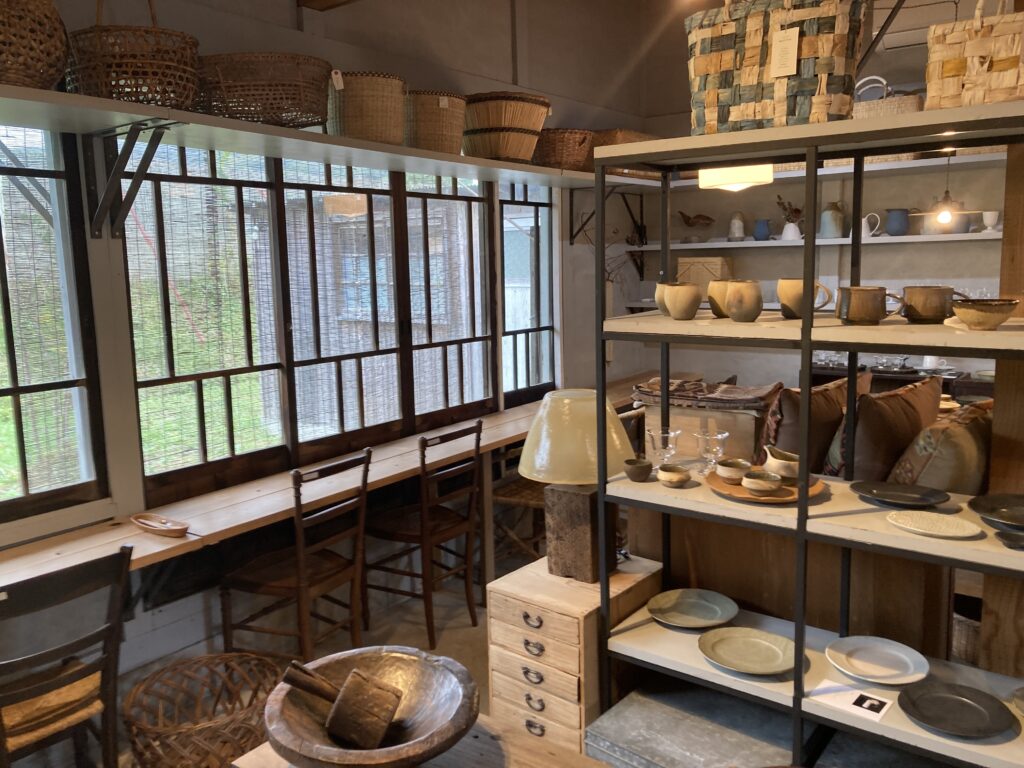 店内には、手作り雑貨や陶器、小さな家具などが並ぶ販売コーナーも。