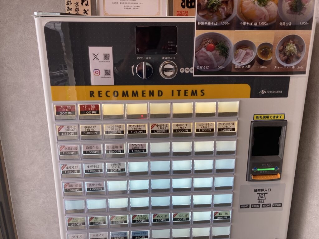 店内入口を入ってすぐ左手に写真のような券売機が設置されていて、まずは食券を購入するスタイル。