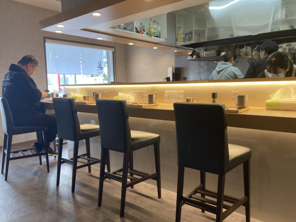カウンター席の前にはダウンライトも点いていて、ラーメン屋さんというよりは、ここだけ見ればまるでバーのような雰囲気です。