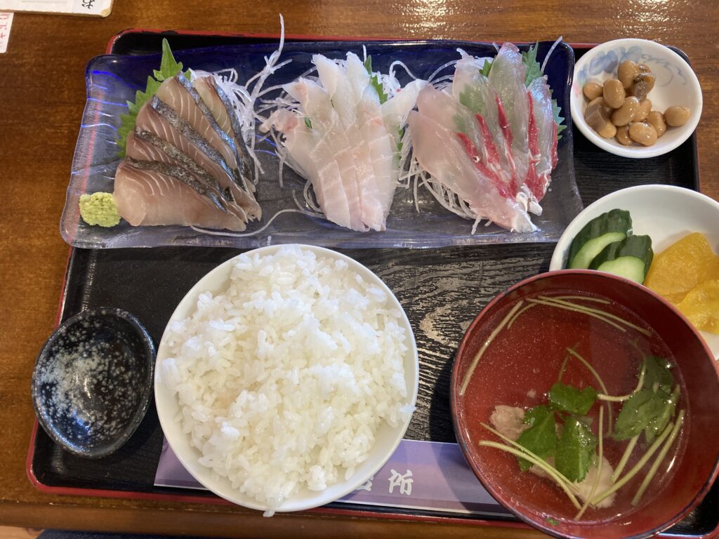 今回は、**魚を自分で選べる「地魚三点盛り定食」**を注文。