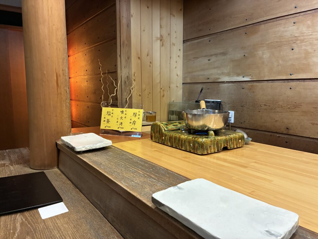 基本的には「カウンター席での鮨コースのみ」のお店となりますが、座敷席にソファーが設置されていましたので、そこでひと休みをすることは可能かと思います。