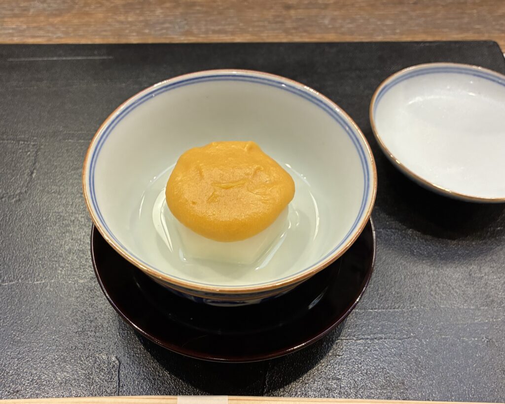 続いて上品なカブに優しい甘さの柚子みそを乗せた椀物と、これまた上品な茶碗蒸しが登場です。