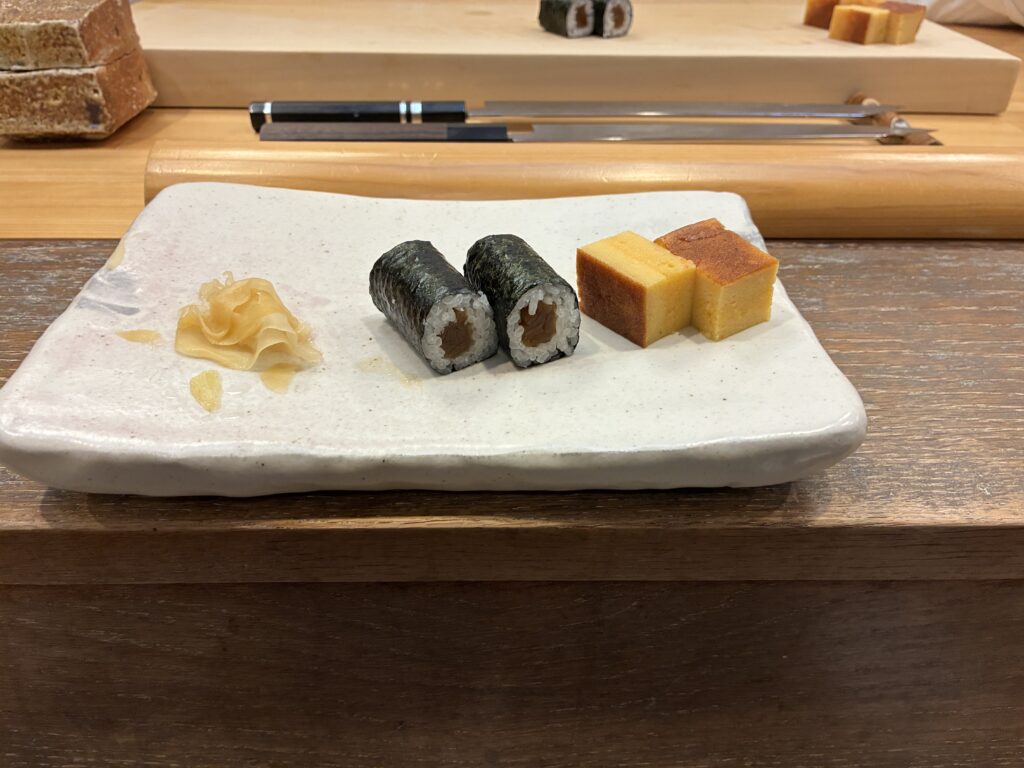 「最後の巻物と卵でコースが終了!」のお店が多い中、結局デザートも近所で食べることが多いのであれば、そこまでしっかりと楽しんで頂きたいという想いを込めての、デザートの提供とのこと。